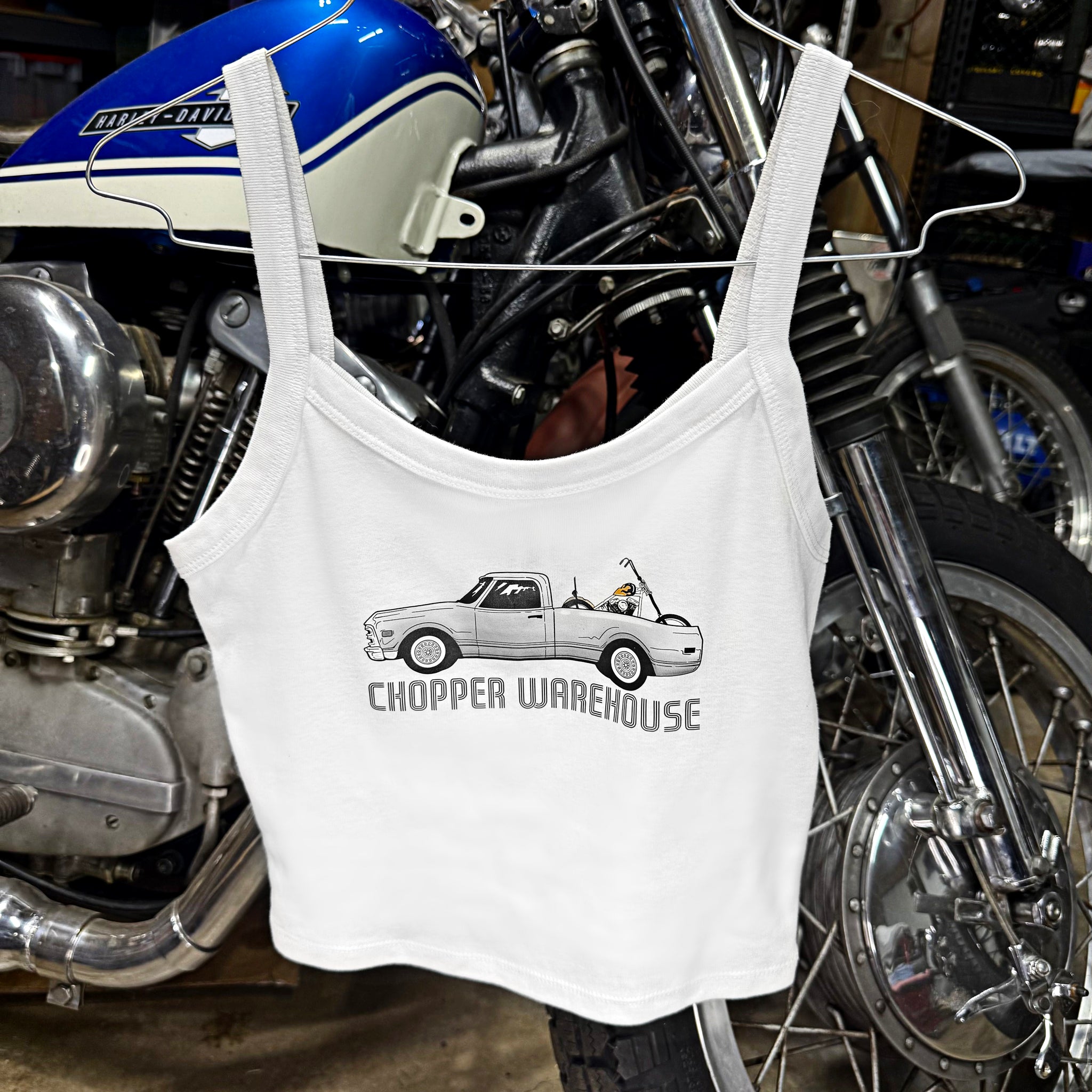 Slim fit spaghetti strap tank top crafted from 52% cotton/ 48% poly blend jersey